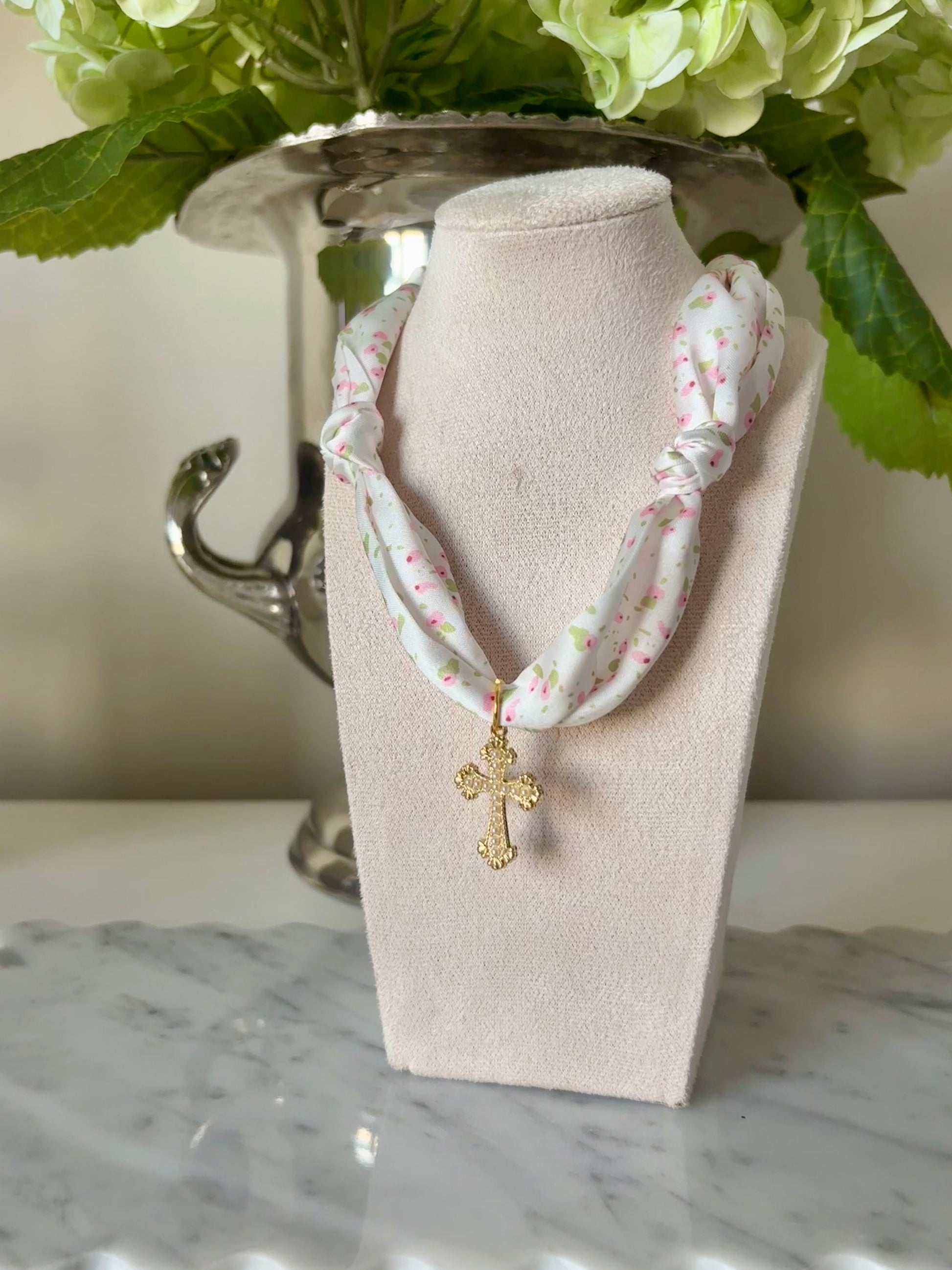 Pearl Cross Scarf Necklace